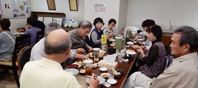 何軒かある餃子屋に散らばり、一緒にビ-ルを旨そうに飲んでいる人もいました。