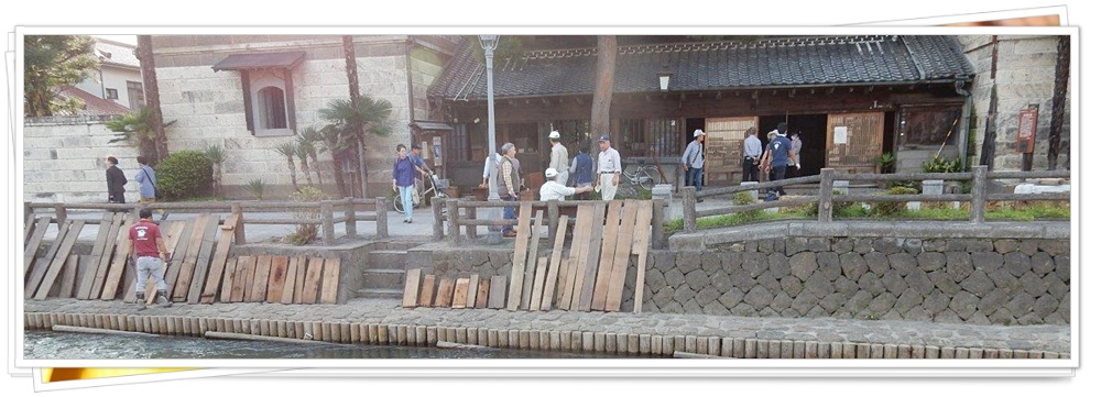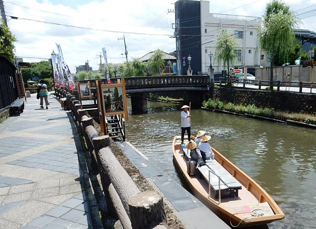 蔵の街遊覧船乗り場に行きましたが、生憎と巴(う)波川(づまかわ)が台風で増水し臨時休業、川沿いにある老舗の商店では数日前は床上浸水になり清掃・片づけをしているところもありました。