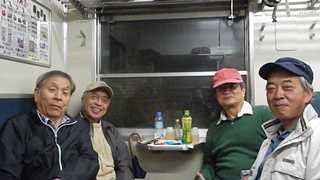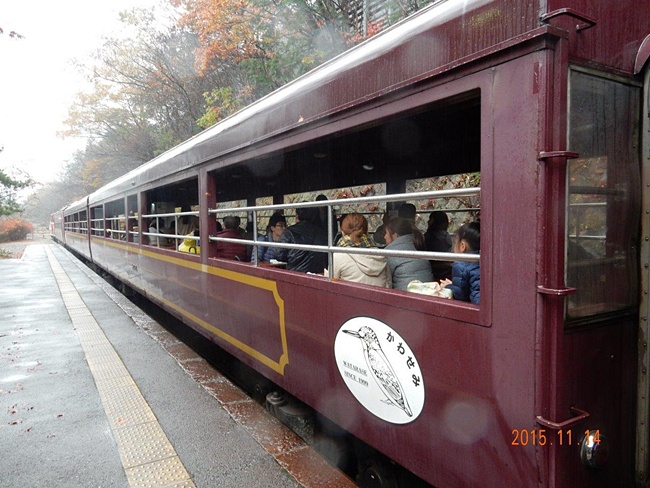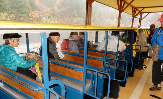 帰りのトロッコ列車では疲れからウトウトする方、再度飲み直す方等々。大間々駅到着したところ雨が激しくなり、予定していた岩宿遺跡見学は中止して帰路につきました。
