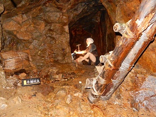 坑道は1,234Km(東京から博多間)に及ぶそうです。坑道までトロッコ列車でのろのろ進み、夏でも涼しい坑道内資料館では展示設備が整っており当時の採掘の様子を電動人形で作業会話を交えて面白おかしく説明されていました。