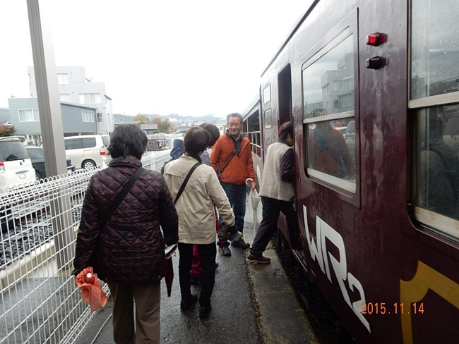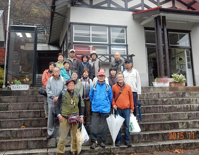 11月14日(土)埼玉県民の日、紅葉シーズンでもあり、集合地大間々駅まで渋滞が予想されたことから、熊谷駅他2ヶ所からの出発時間を早めたところ、当日は生憎の小雨模様、各車とも予定時間の1時間も前に到着していました。今回は17名参加です。