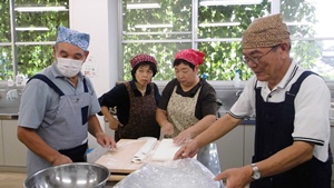 第2弾は9月26日料理教室並びに料理講習会でした。10名の方が出席し、各人が何らかの物を持ち合いました。特に、金子さんは料理に必要なうどん粉やゴーヤーゼリーにする寒天の他に道具等も取り揃えてくださいました。又講師もして頂きました。2つの班に分かれての料理作りであったが、全員が何らかの作業し和気藹々と雑談しながら食べられました。男どもとしては良い経験となったと思います。加藤さんが欠席されたのは残念かなあ!