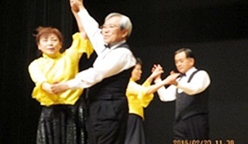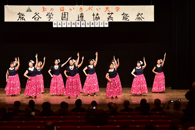 初めに合同フラダンス愛好会演技にダンスクラブの高田さき子さんが出演、黒とピンクの艶やかな衣装で「花は咲く」を表情豊かに舞いました。