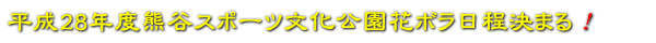 平成28年度熊谷スポーツ文化公園の花壇整備ボランティア(花ボラ)の日程を下記の通り決定いたしました。