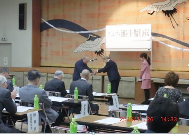 平成27年11月26日大里コミュ二ティセンターにおいて熊谷市コミュニティづくり市民協議会より、第4回コミュニティ活動表彰式があり奨励賞を受賞致しました。