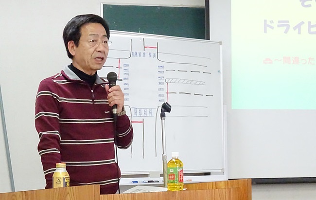 学習会は二部構成で第一部は、当期会長の酒井興一氏が講師となり『そうだったのか!ドライビングの新しい常識』と称し時代の変化を踏まえた“自動車の安全運転”に関する事項をわかりやすく解説して頂きました。
