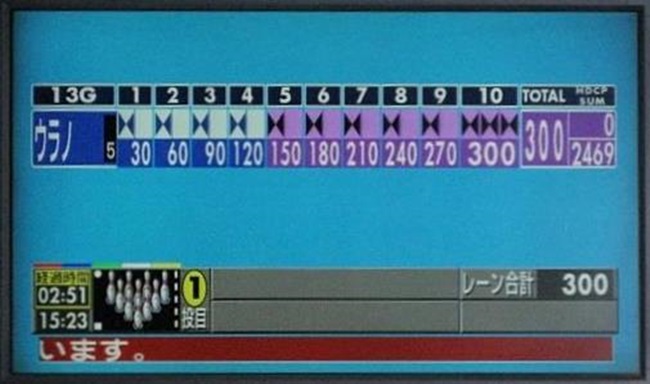 たまたま隣のレーンの人が「300点満点」を出し、係員に記念写真撮られるのを見惚れました。