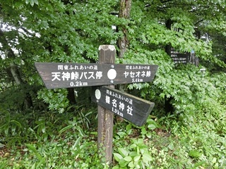 今回は真夏の山歩きの為コースを短くし、天神峠~氷室山~天目山~七曲峠~松之沢峠~磨墨峠~ゆうすげの道~駐車場まで歩き、バスで「ゆうすげ元湯」へ約5Km・3時間のコースを計画しました。