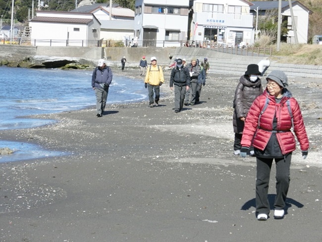 また、コース最後の菜の花畑を楽しみにしておりましたが、残念ながら見ることが出来ずに「道の駅とみうら」に到着です。最後に地元のお土産を買い求めバスへ、18時30分無事到着しました。8Km・4時間10分(食事・休憩含め)、冬のハイキングを楽しめた一日でした。