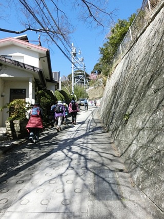 東海道線車内からも山側に見える湘南平のテレビ塔を目指します。雑木林に包まれた道や時折急な坂道を登り降りして湘南平に到着です。