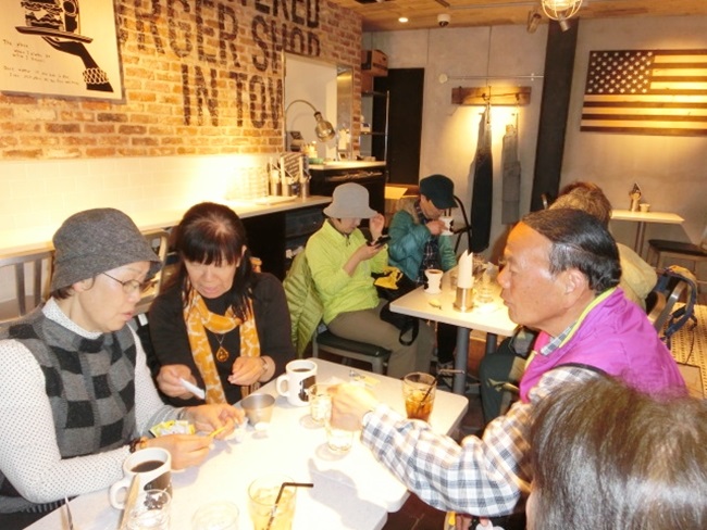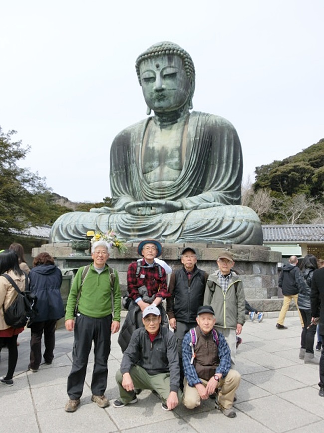 昼食は、空いている店を探し、3月11日解禁の「しらす丼」を食べ満足な昼食でした。食後は鎌倉に来ても海岸を見ていない人も多く、由比ガ浜海岸で海の匂いを胸いっぱい吸い込み、気持ちの良い浜歩きを楽しみました。駅への途中で「コーヒータイム」も。鎌倉駅には16時到着、約17,800歩の早春ハイキングでした。