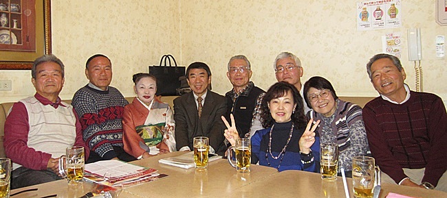 休憩時間です。部長のTさんが、三好先生と一緒に来られた、シャンソン歌手とお話です。