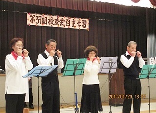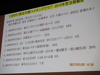 久しぶりの班毎の昼食の後、午後の第二部は各クラブの活動発表。一年振りの元気な活動に笑いと激励の拍手が一杯でした。実技の社交ダンス・ハーモニカ・太極拳各クラブの熱演の後はスクリーンと プロジエクターを活用してのハイキング・史跡めぐり・ゴルフ各クラブの映像と活動報告、締め括りはパソコンクラブ報告と、仲間の元気な活動の継続に頼もしさと連帯の絆を強くしました