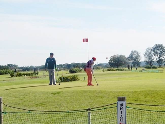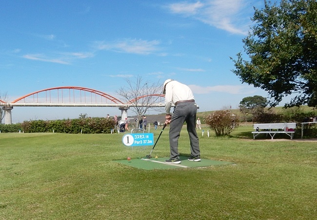 コスモスコースのOutコース(448.0ḿ)とINコース(484.3m)に別れ4人一組でパー66の1ホール約90分の1ホールを楽しみました。※空振りは、ペナルティなしで、打数に加えなくてもいいんです。
