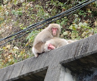 最寄駅から高崎線の下り電車に乗り、横川駅で下車してここから歩き始め、周りの紅葉を愛でながら歩いていると、野生の猿のお出迎えにはビックリしました。