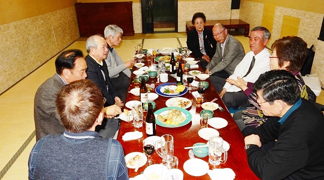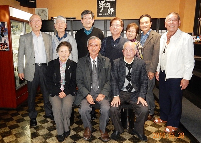 転勤迄後1週間、とても時間のないところを無理を承知で時間をとって戴き、3月28日(月)2年制4期生の元三役、現三役、新三役及び発起人9人が急遽馳せ参じ、今迄の御礼とお別れの挨拶をし、別れを惜しみました。