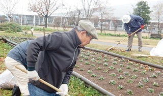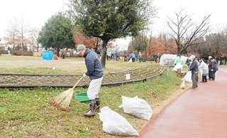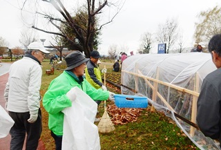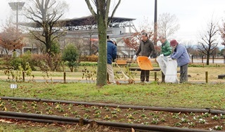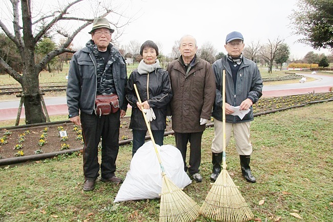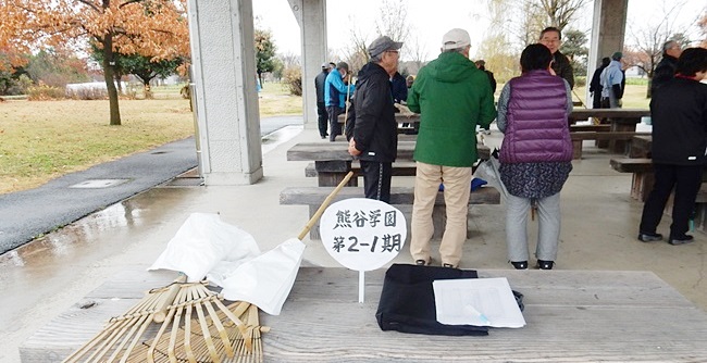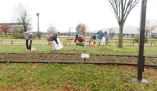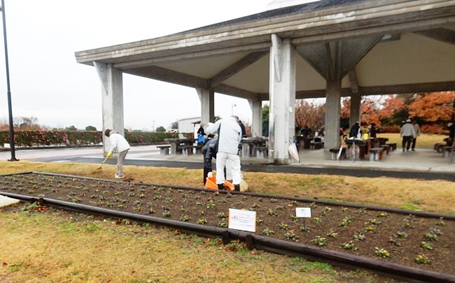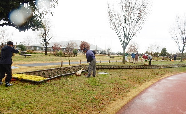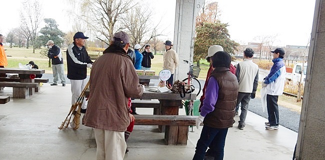 冒頭 中島会長から ねぎらいのお言葉を頂きました、花壇周辺の落葉やゴミを拾い綺麗にして新年を迎えましょうと。又公園事務所からも、今年一年花壇整備に御協力頂き感謝のお言葉を頂きました。