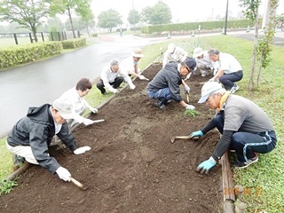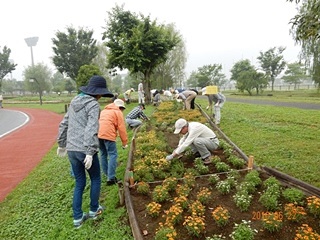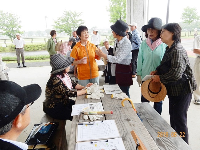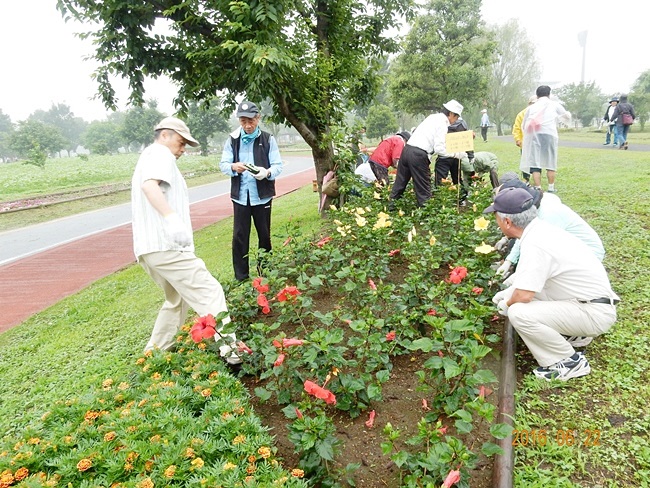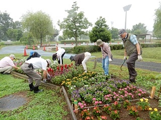小雨の降る中、第三回目となる、熊谷スポーツ文化公園花ボラ(除草及び散水)の日です。