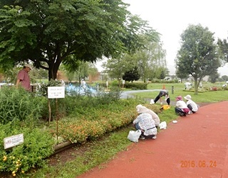 花壇の草むしりは手慣れたもんで、雑草も土が柔らかいせいか、手でよく抜けます。まだまだ残暑が続きます。水分は充分に取り熱中症には気を付けましょう。