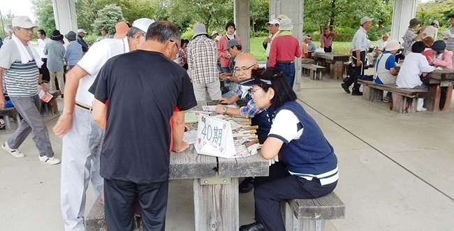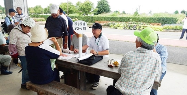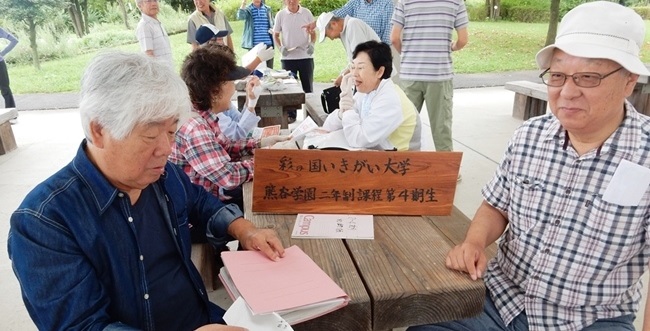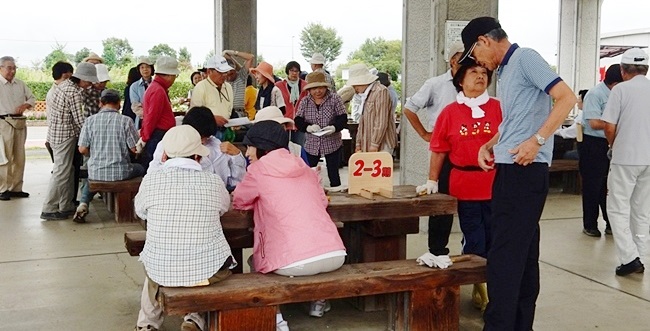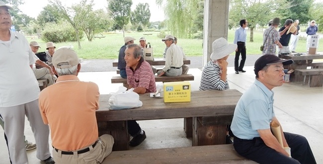 8時30分には四阿でのテーブルに各期が各々プラカードを立て仲間をお待ちになっています。久方ぶりの団欒で賑わいがあふれています。