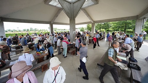 社会参加活動として、最初に挙げられるのは熊谷スポーツ文化公園花壇管理ボランティア(花ボラ)です。毎月2回第2・第4水曜日、早朝1時間半実施していますが、毎回150名以上が参加し、各校友会の交歓会の様相を呈しています。