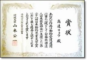 (環境大臣表彰状) (日本動物文学大賞表彰状)