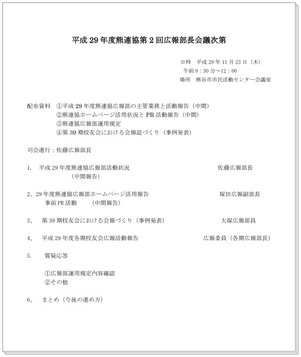 1.平成29年度熊連協広報部活動状況(中間報告) :佐藤広報部長