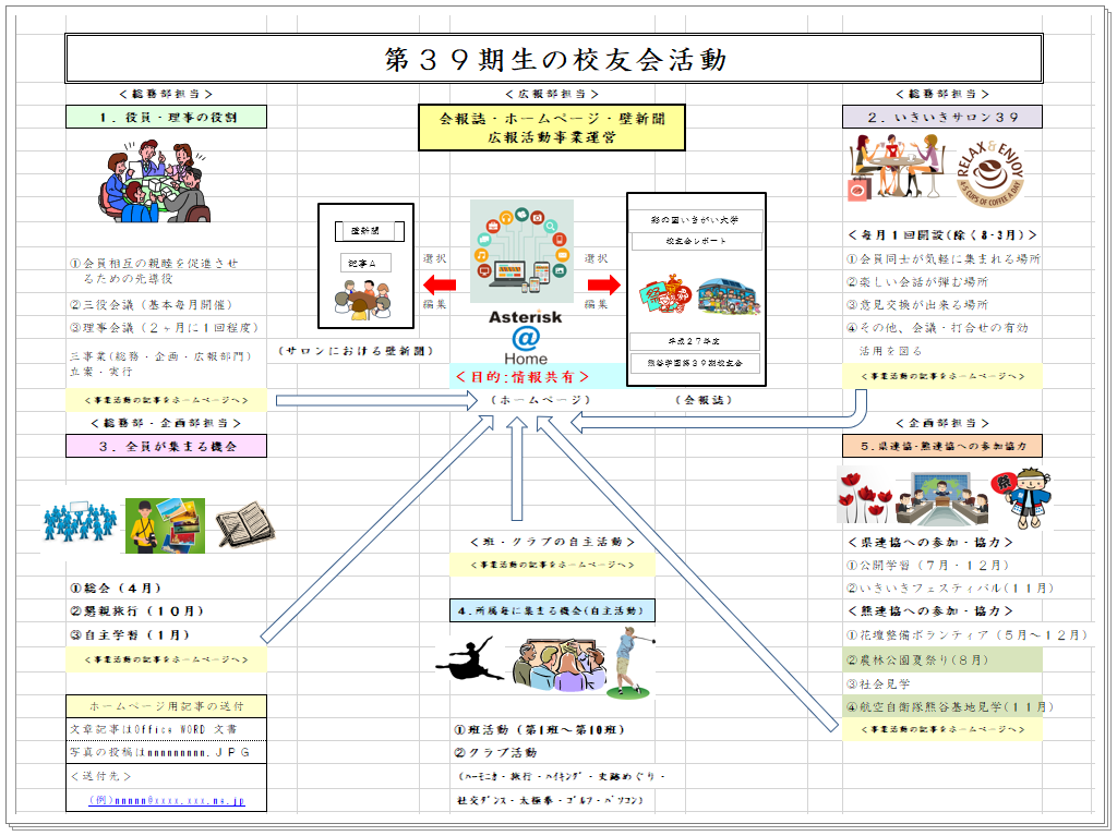 又、今年度より始めたが、活動報告だけでなく、事前の行事開催情報の提供を進めていく。