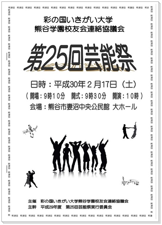平成29年度熊連協「第25回芸能祭」は2月17日(土)熊谷市妻沼中央公民館ホールにて盛大の中にも楽しく開催することが出来ました。