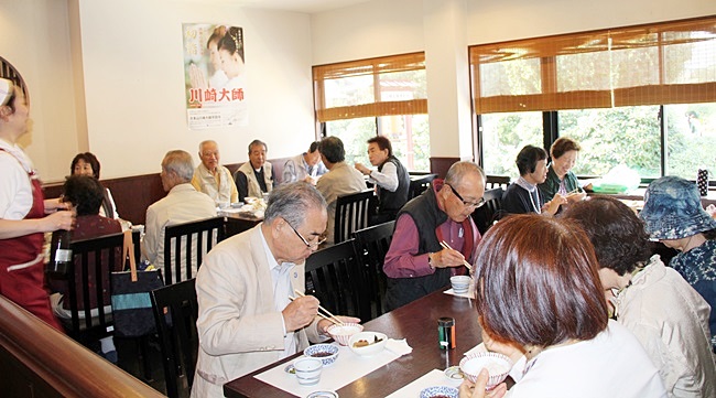 その後大山門前に集合し、門前のお蕎麦屋さんで昼食です。おでんに御飯・御新香・天ぷら・そばと美味しく頂きました。おしゃべりしながら楽しいひと時です。