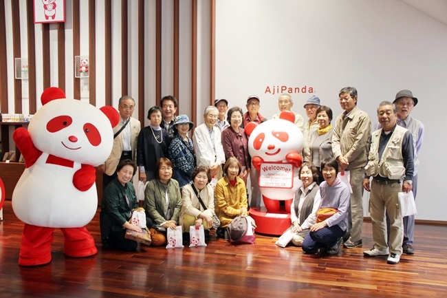 (味の素川崎工場で「味パンダ」と記念撮影)