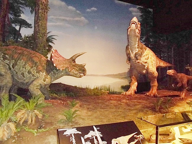 自然博物館 恐竜コ-ナ-です。実物大の恐竜が動いて威嚇します。
