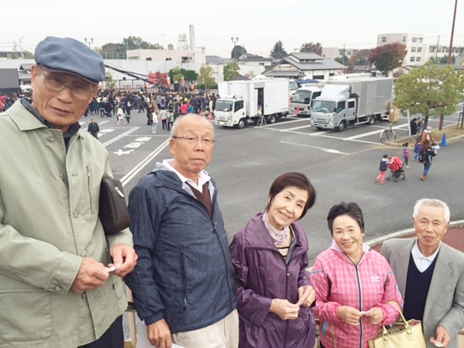 ロケ地は駅伝の応援シ-ンなので小旗をもって応援のエキストラでいっぱい。写真撮影禁止なので、遠くから1ショット。役所広司、寺尾、山崎等実物に会えて、にわかエキストラで駅伝応援。