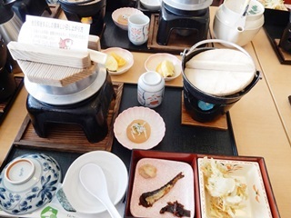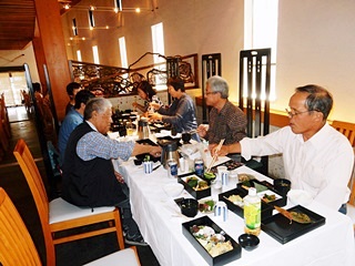 次に向かったのは、レストランでの昼食「金目鯛の釜まぶし」定食です。ミニクルーズも楽しみ、お土産に「ぶどう・アジの干物・とうもろこし・梨・とうふ」も頂き得した気分でした。