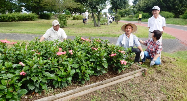 今日は7:8班の花ボラ当番日です。梅雨中の晴れ間を見計らって菖蒲公園に行ってきました。