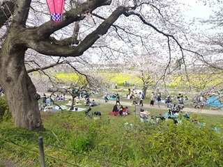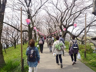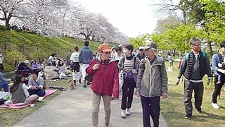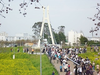 (外野橋には人盛りでした) (堤の下はお花見客でいっぱいです。