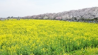 権現堂堤の桜と菜の花
