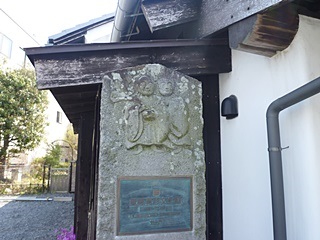 (永久商店脇の壁に松尾芭蕉と弟子の曽良の絵が)