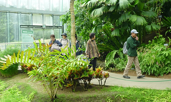 休憩後は大温室に向かい熱帯植物や果実の展示を南国気分で鑑賞しました。