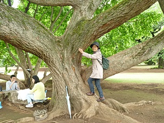 大きなユリノキに登り子供に戻り楽しみました。フランス式整形庭園のバラ園は、いろいろなバラは咲いて綺麗でした。