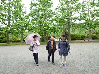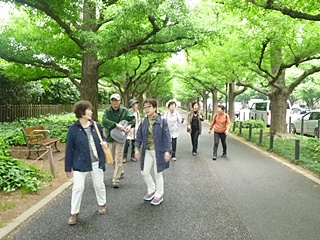 新緑の森とイチョウ並木や美しい庭園を眺めて歩き、都会の息吹を感じた楽しい一日でした。