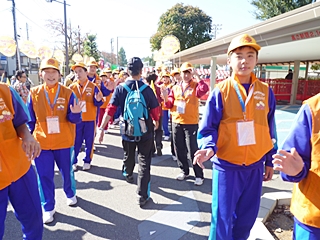 森林公園駅を左に曲がりのゴールの中央会場向かいました、足がだんだん重くなりましたが、声を掛け合い、昼のランチと名物の焼き鳥でビールを楽しみに頑張りました。