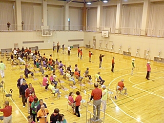 籠原体育館で練習を実施しています。誰でも簡単にできる有酸素運動を基本としたスポーツです。