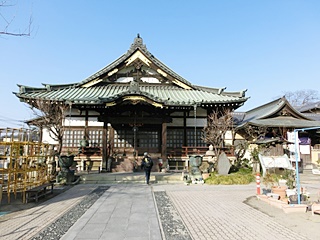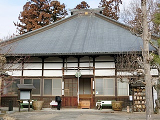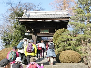 朝から好天の20日、熊谷駅南口に17名が参加。太田駅まで8時30分発の路線バスを利用しました。七福神めぐりは約13Km、金山城址への立ち寄りコースが約4Kmと歩行距離が長くなるため、太田駅北口からタクシーに分乗して歩き始めの曹源寺へ、9時45分に到着しました。