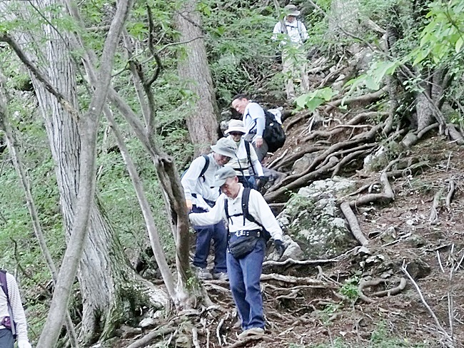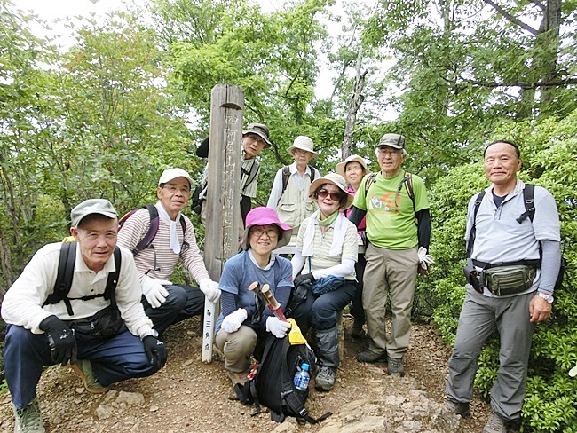 今回は、蒸し暑い天候の中でのハイキング、熱中症に注意をしながらの山歩きでした。山頂手前のクサリ場にも挑戦し全員無事山頂に立つことが出来ました。