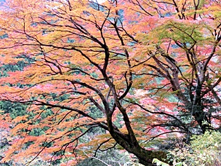 秋のこの時期は山々の紅葉が素晴らしく、特に樹齢200年「いろは楓」の木は鮮やかな真紅の色合いに圧倒されました。