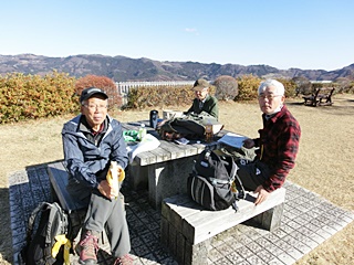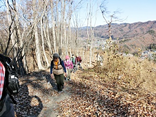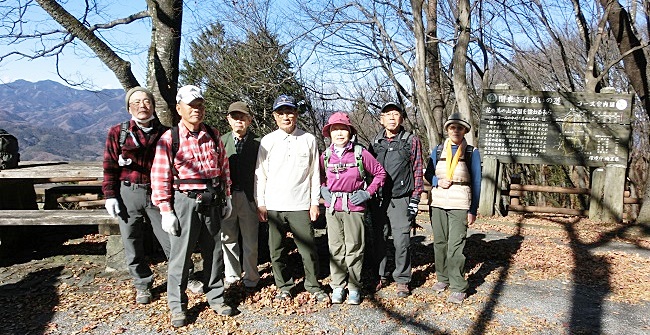 快晴の天候にも恵まれ、枯れ葉に埋まる山道と木漏れ日降り注ぐ斜面をゆったりとした山歩きを楽しみ、山頂展望台から奧武蔵・秩父・上州の山並みの眺望を堪能することが出来ました。