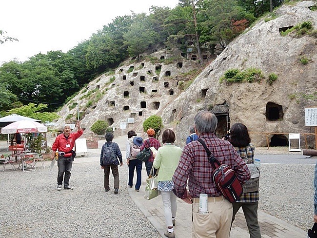 5月9日(火) 今日は男性5名女性11名計16名の参加です。吉見百穴。箭弓稲荷神社、岩殿観音、埼玉ピースミュウジアム、丸木美術館とちょっと欲張りな史跡見学です。