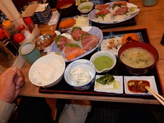 (あ~疲れた、まずは1杯) (海鮮丼で腹いっぱい)