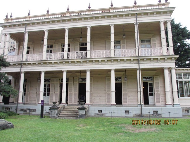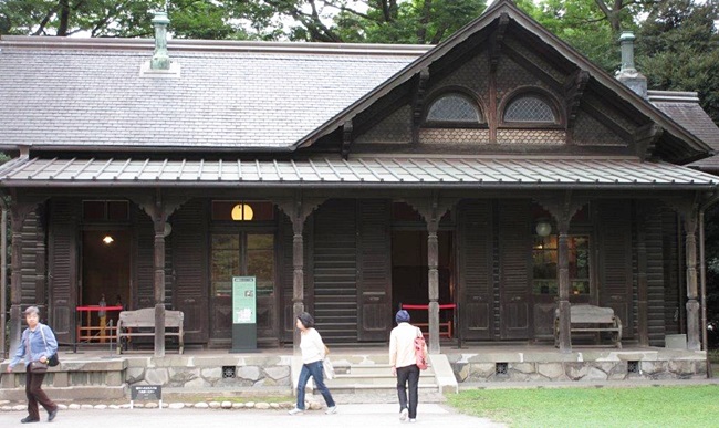 次の訪問先は旧岩崎邸庭園。地震のない国英国人ジョサイア・コンドル氏が地震国日本に建築した洋館。往時は20棟あった。